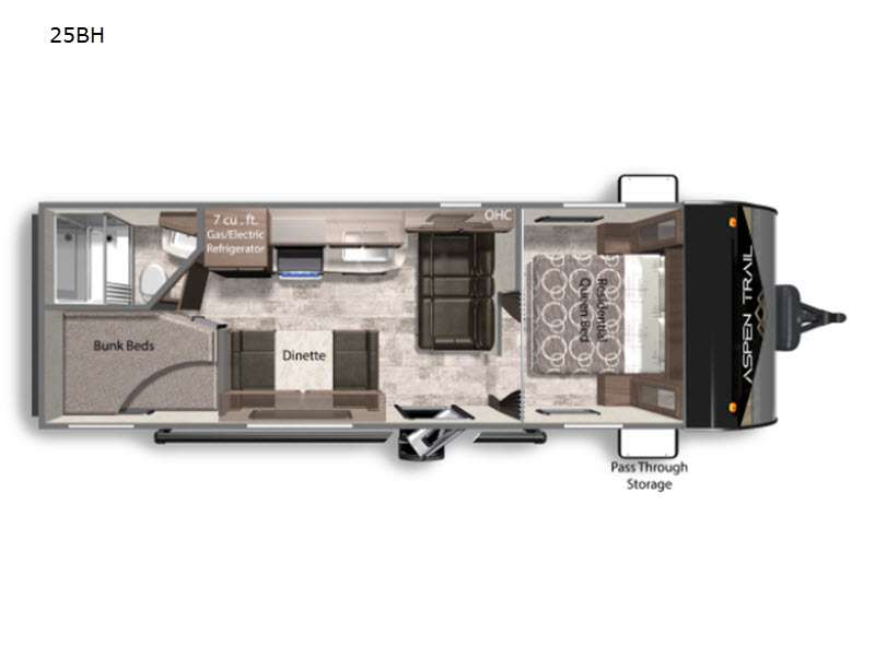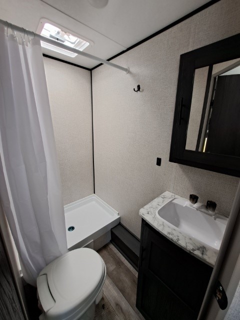 Kitchen Area, Bunks, 3-piece bathroom, awning